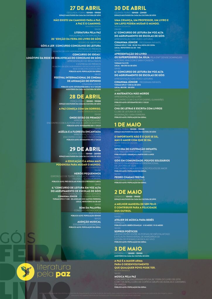 O programa completo está disponível aqui: https://www.cm-gois.pt/viver/cultura/agenda-proximos-eventos/evento/28-feira-do-livro-de-gois