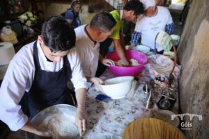Esta ação cultural e gastronómica sobre o tema “Broa e truta – à descoberta da origem dos ingredientes” começou nos Passadiços do Cerro da Candosa, seguindo-se uma visita ao Lagar Museu da Cooperativa de Vila Nova do Ceira, onde os participantes ficaram a conhecer o funcionamento tradicional do antigo lagar. Para além destes locais, ainda houve oportunidade para conhecer o Moinho das Latas, onde foi possível ver o moinho em funcionamento e adquirir a farinha de milho para confecção da broa, a Praia Fluvial das Canaveias, o “Ciclo da Truta de Góis – Parque da Monteira”, terminando no Forno da Aldeia da Monteira, onde confeccionaram a broa em forno a lenha com utilização de produtos locais.