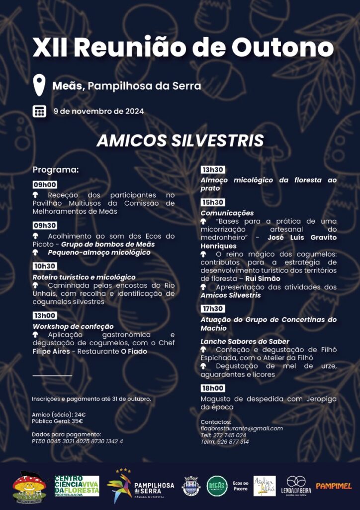 Uma caminhada micológica pelas encostas do Rio Unhais, confeção e degustação de cogumelos e produtos endógenos, ações de sensibilização para a importância da micologia, animação musical e até um magusto. Estes são alguns dos irresistíveis ingredientes com que o grupo “Amicos Silvestris – Movimento Amigo dos Tartulhos” vai receber sócios e amigos, na aldeia das Meãs, para a celebrar a XII Reunião de Outono.