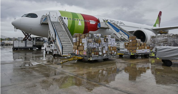 NO DIA 30 DE MARÇO, AVIÃO DESCARREGA NO AEROPORTO “HUMBERTO DELGADO” A PRIMEIRA IMPORTAÇÃO DE EQUIPAMENTO PARA COMBATER O “COVID-19”