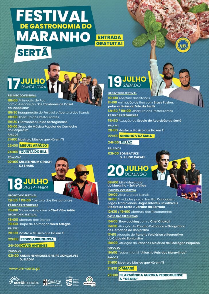 “O Maranho da Sertã é o grande embaixador gastronómico da Sertã e, através do Festival de Gastronomia, tem sido possível impulsioná-lo para novos patamares e ajudar a reforçar a imagem do concelho como um destino de eleição para os apreciadores das nossas tradições culinárias”. As palavras de Carlos Miranda, Presidente da Câmara Municipal da Sertã, não deixam dúvidas sobre a importância do Festival de Gastronomia do Maranho da Sertã, cuja 13.ª edição tem início no próximo dia 17 de julho, decorrendo ao longo de quatro dias até 20 de julho.