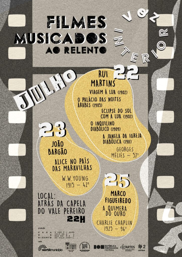 Já no dia 23, João Bargão, com guitarra e percussão, dará música à adaptação de 1915 do cineasta W.W. Young ao clássico de Lewis Carroll, “Alice no País das Maravilhas”.
