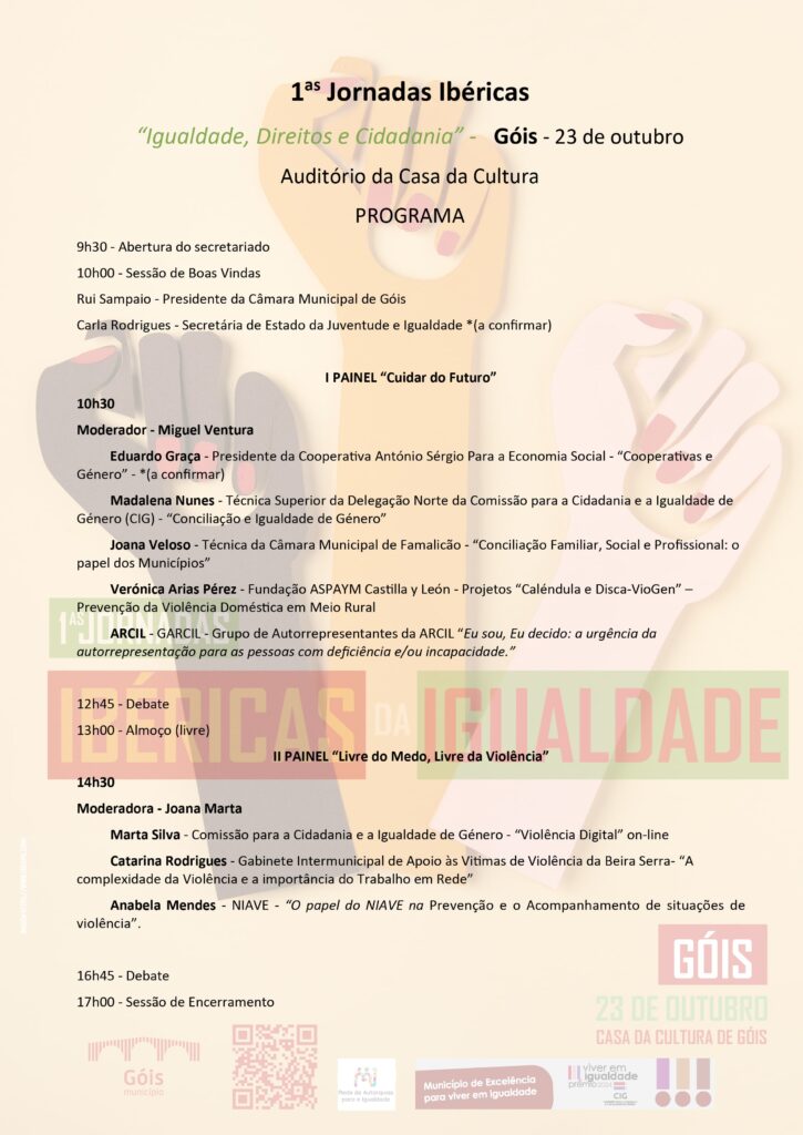 No ano em que se assinala o 51º aniversário da Revolução de Abril e os 30 anos da Convenção de Pequim, o Município de Góis promove as 1ªs Jornadas Ibéricas da Igualdade, uma iniciativa que promove a partilha e reflexão para a construção de uma sociedade mais justa, inclusiva e participativa.