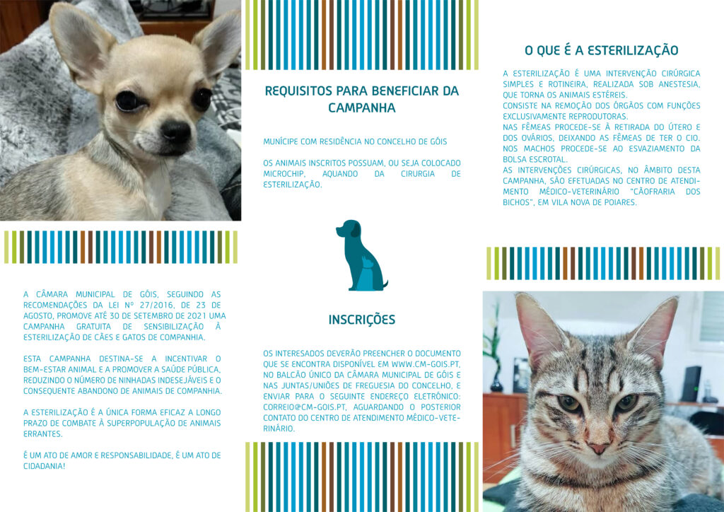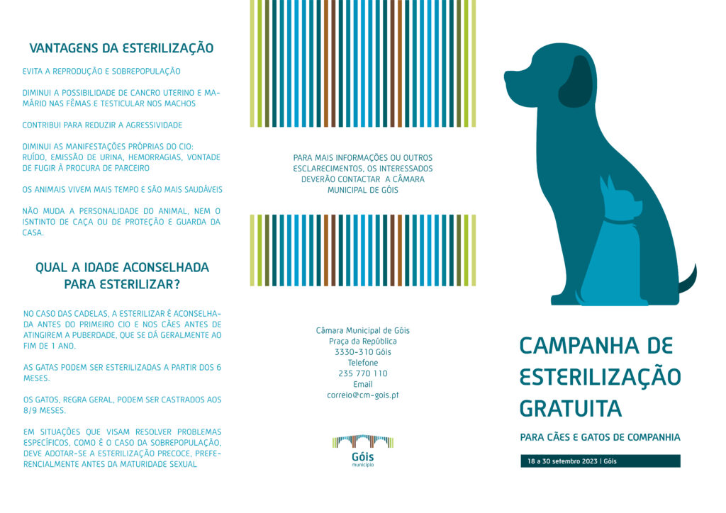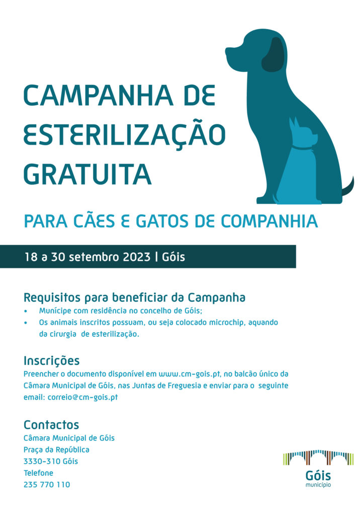 Início/Góis/GÓIS – CAMPANHA DE ESTERILIZAÇÃO GRATUITA PARA CÃES E GATOS DE COMPANHIA 18 A 30 SETEMBRO 2023 GÓIS – CAMPANHA DE ESTERILIZAÇÃO GRATUITA PARA CÃES E GATOS DE COMPANHIA 18 A 30 SETEMBRO 2023