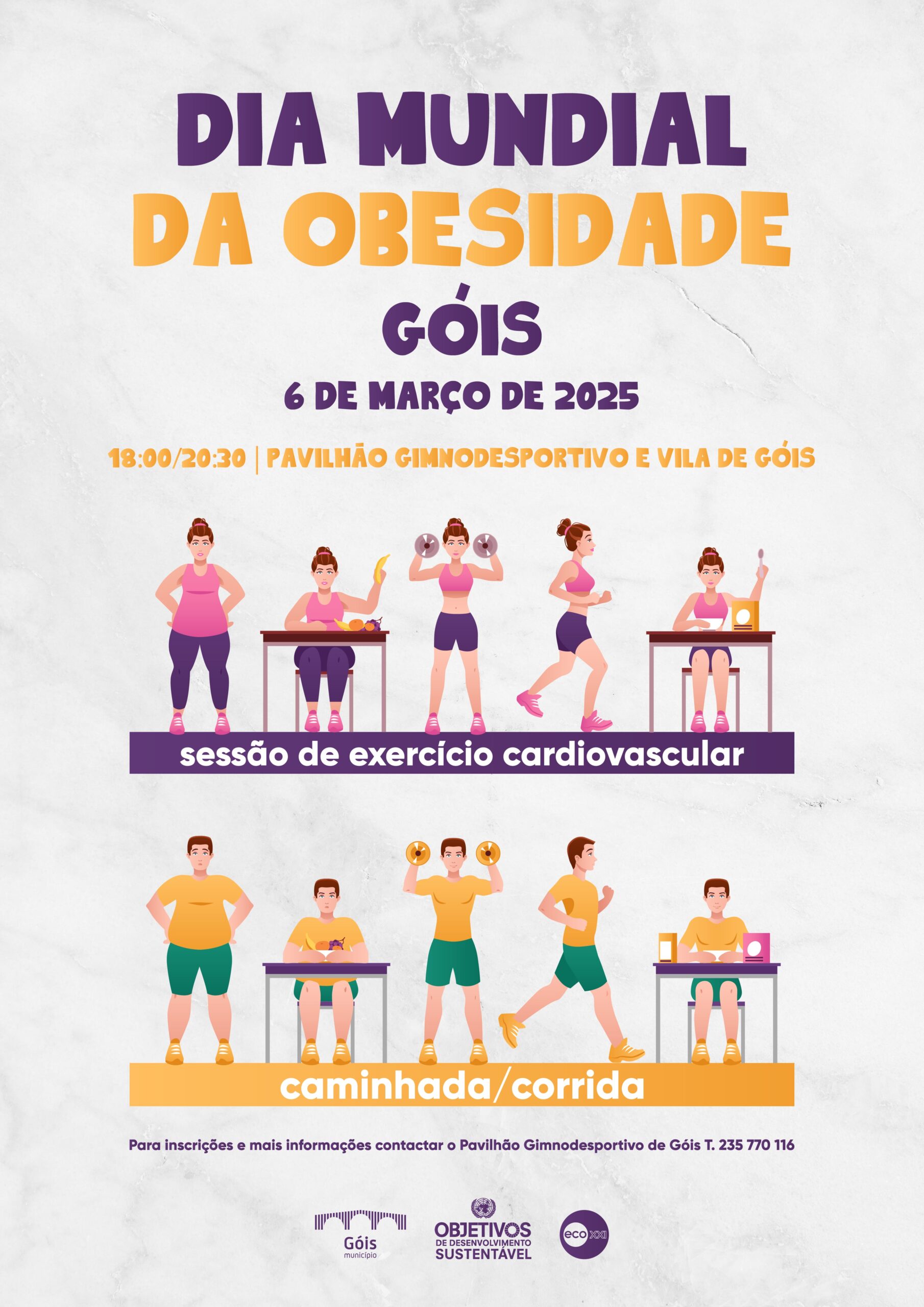 O Município de Góis está a promover, no Dia Mundial da Obesidade – 6 de março, uma sessão de exercício cardiovascular no Pavilhão Gimnodesportivo de Góis, e uma caminhada/corrida pela Vila de Góis, com início pelas 18h00, com o objetivo de consciencializar a comunidade para esta doença.