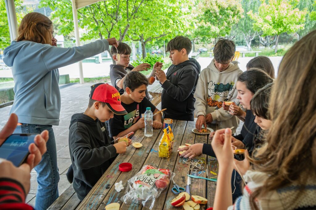 Utilizando uma das técnicas mais fáceis (e certamente mais saborosas), os alimentadores foram criados com recurso a fatias de maçã, untadas com manteiga de amendoim e polvilhadas com vários tipos de sementes que, posteriormente, foram penduradas nos ramos de árvores.