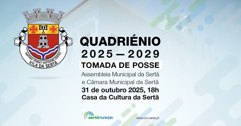A cerimónia de instalação da Assembleia Municipal da Sertã e da Câmara Municipal da Sertã decorrerá no próximo dia 31 de outubro, sexta-feira, às 18 horas, na Casa da Cultura da Sertã.