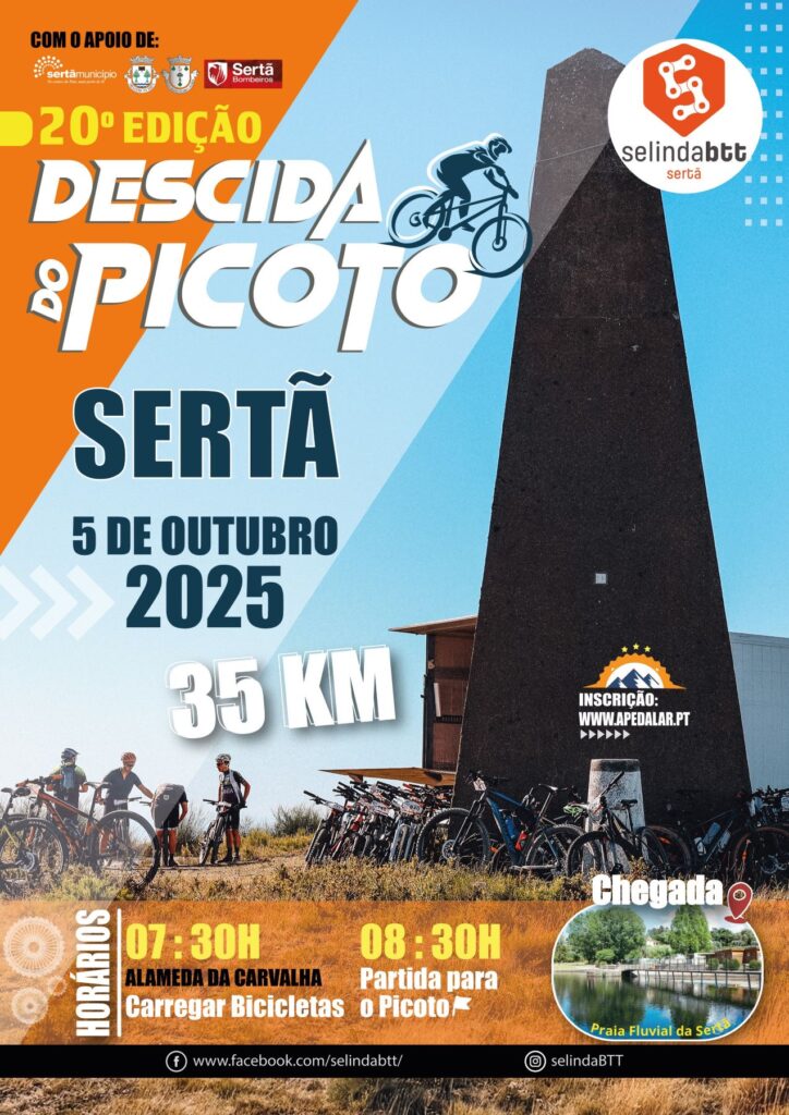 No domingo dia 5 de outubro, regressa a já icónica Descida do Picoto, naquela que vai ser a vigésima edição desta iniciativa promovida pela associação sertaginense Selinda BTT, com o apoio do Município da Sertã. Com uma extensão total de 35 km, este passeio de BTT apresenta um grau de dificuldade baixo/médio e irá percorrer caminhos rurais e trilhas em diversas freguesias do concelho da Sertã, privilegiando o espírito de participação e a fruição das paisagens. O trajecto estará aberto ao trânsito de veículos, devendo os participantes respeitar as regras de trânsito.