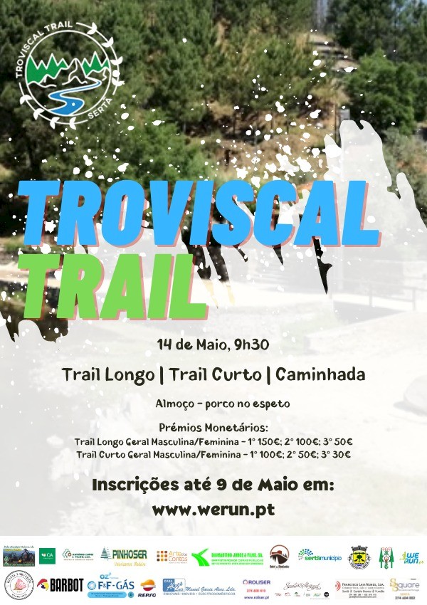 O Troviscal Trail está de regresso para a terceira edição que se realiza a 14 de maio no Troviscal, concelho da Sertã. A iniciativa começa às 9h30m e consiste numa prova de Trail Running em Natureza composta pelas provas Trail Curto (k12+), Trail Longo (k29+) e Caminhada (10 km).