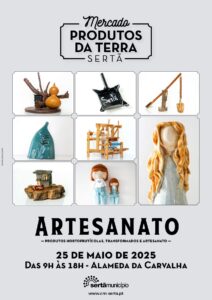 Dia 25 de maio, a Alameda da Carvalha, na Sertã, recebe uma nova edição do mercado “Produtos da Terra”, este mês dedicado ao Artesanato. Aqui, será possível conhecer e apreciar o trabalho de vários artesãos do concelho, assim como encontrar produtos endógenos, hortofrutícolas diretamente do produtor e muito mais. O mercado “Produtos da Terra” pode ser visitado das 9 às 18 horas.