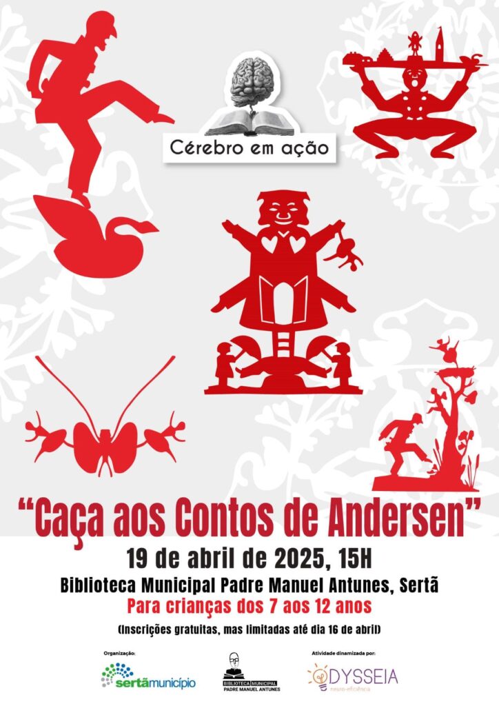 A iniciativa “Cérebro em Ação” regressa a 19 de abril, a partir das 15 horas, à Biblioteca Municipal Padre Manuel Antunes, na Sertã, para uma sessão dedicada a Hans Christian Andersen. Dirigida a crianças dos 7 aos 12 anos, esta “Caça aos Contos de Andersen” pretende explorar este autor dinamarquês de uma forma lúdica, incentivando a leitura e a aproximação à literatura clássica.