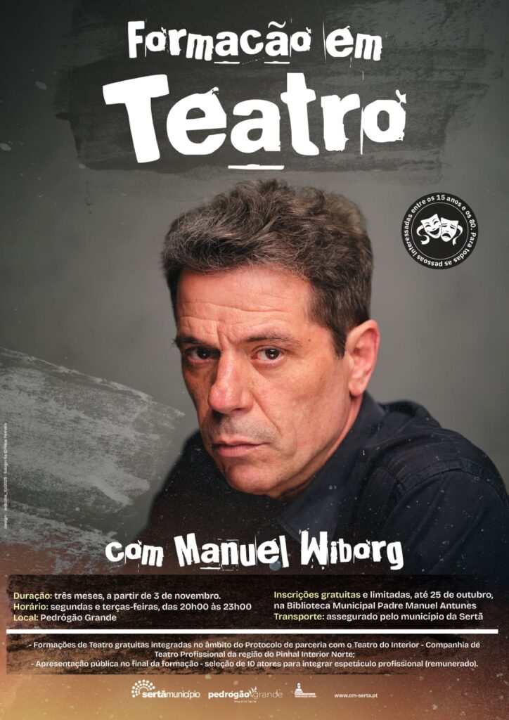 Esta formação terá a duração de três meses, iniciando-se a 3 de novembro e decorrendo às segundas e terças-feiras em horário pós laboral (das 20 às 23 horas). As inscrições, gratuitas mas limitadas a 10 participantes, poderão ser realizadas até dia 25 de outubro na Biblioteca Municipal Padre Manuel Antunes, na Sertã. De referir que o Município da Sertã garante o transporte aos formandos até ao local das sessões, em Pedrógão Grande. Poderá inscrever-se na formação qualquer pessoa (dos 15 aos 80 anos), não sendo necessário ter experiência em teatro. No entanto, a admissão à formação ficará dependente de uma entrevista pessoal com o diretor do projeto, Manuel Wiborg.