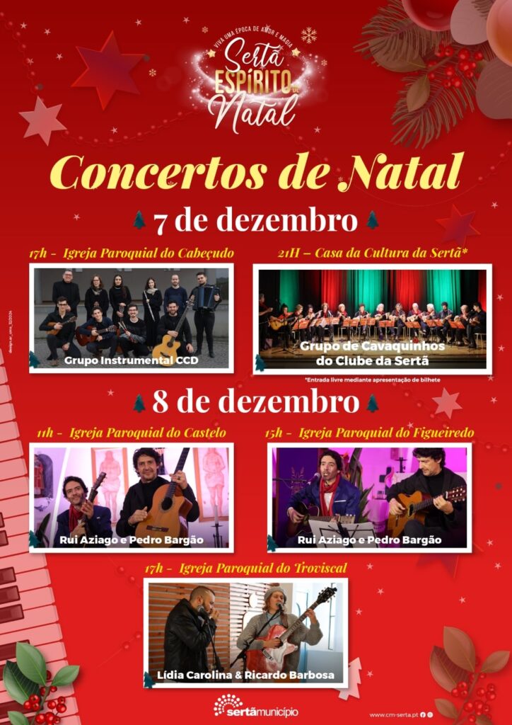 Todos os concertos são de entrada gratuita. Para o Concerto na Casa da Cultura, dia 7 de dezembro, é necessária apresentação de bilhete previamente levantado no local do espetáculo. A programação de concertos prolonga-se por dezembro dentro, a par de outras iniciativas culturais. Consulte a programação completa da iniciativa “Sertã Espírito de Natal” aqui.