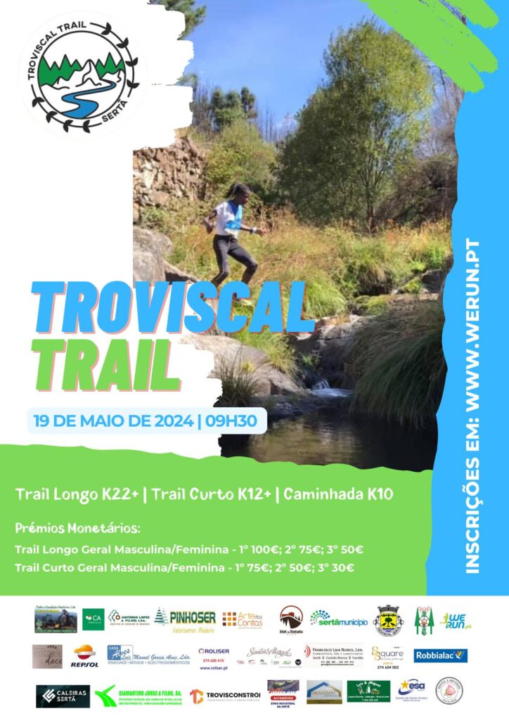 O concelho da Sertã, especificamente na freguesia do Troviscal, vai acolher a quarta edição do Troviscal Trail no dia 19 de maio. Com início marcado para as 9h30m, a iniciativa consiste numa prova de Trail Running em Natureza composta pelas provas Trail Curto (k12+), Trail Longo (k22+) e Caminhada (10 km).