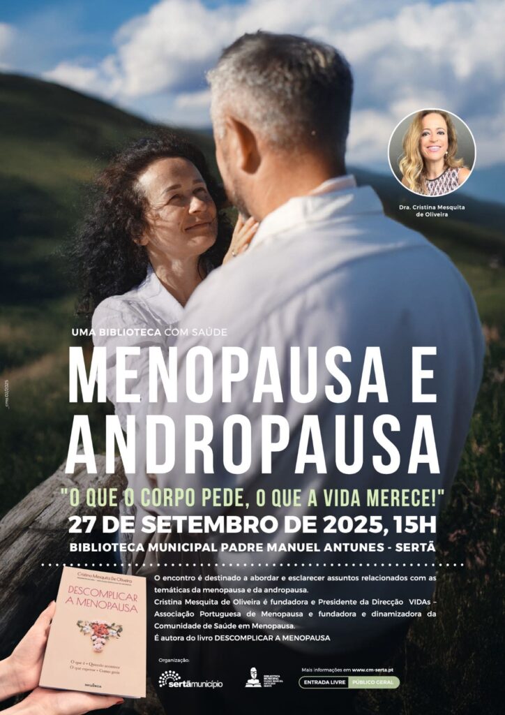 A Biblioteca Municipal Padre Manuel Antunes, na Sertã, acolhe a 27 de setembro, às 15 horas, nova sessão de “Uma Biblioteca com Saúde”, desta vez dedicada ao tema “Menopausa e Andropausa – o que o corpo pede, o que a vida merece”. A sessão será dinamizada por Cristina Mesquita Oliveira, fundadora da VIDAs – Associação Portuguesa da Menopausa.