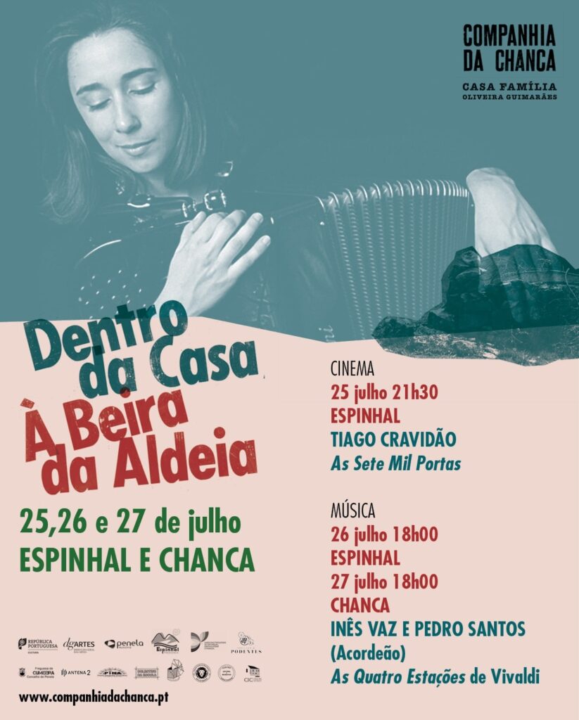 O fim de semana de 26 e 27 de julho será dedicado à música, com o espetáculo As Quatro Estações de Vivaldi no Espinhal (jardim da Casa Família Oliveira Guimarães) e na Chanca, respetivamente, às 18.00. Peça criada por Vivaldi para violino e orquestra, As Quatro Estações é apresentada numa transcrição para acordeão, feita pelos músicos Inês Vaz e Pedro Santos, numa revisitação de uma das mais icónicas e reconhecidas obras do compositor e da época barroca.