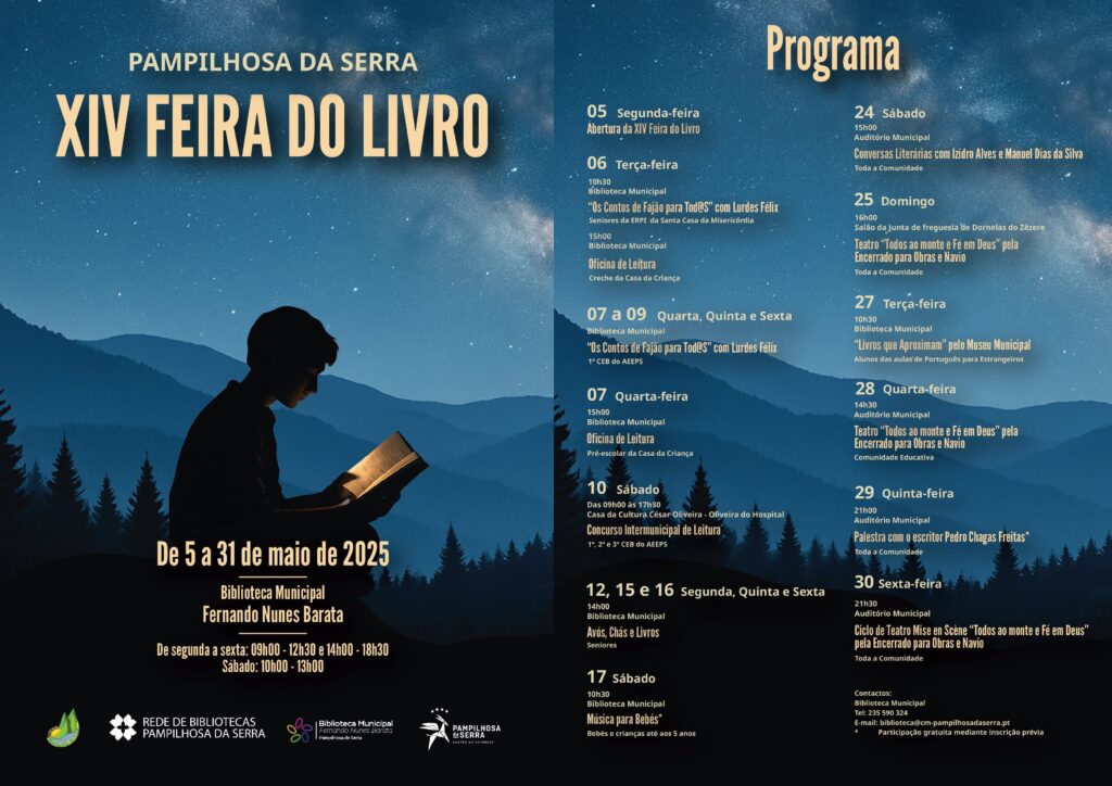 Maio é mês de literatura em Pampilhosa da Serra, mas não só! A partir da próxima segunda-feira, 5 de maio, a XIV Feira do Livro traz histórias, oficinas, música, teatro e conversas inspiradoras, num evento que promete envolver leitores de todas as idades ao longo do mês.